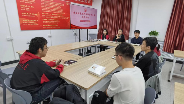 9月23日下午,ladbrokes立博院士特色班师生联合党支部召开党员大会,共同学习《习近平谈治国理政》第四卷,党支部书记赵异肖领学。
