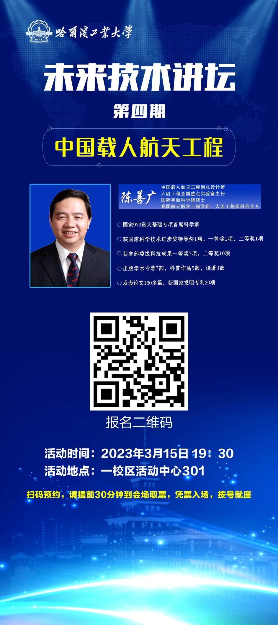未来技术讲坛(第4期)活动邀请到中国载人航天工程副总设计师、国际宇航科公司院士陈善广开展“中国载人航天工程”主题报告。