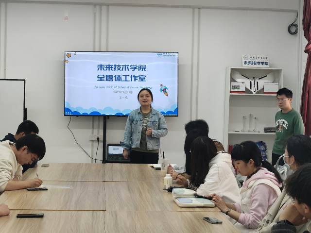会上,全媒体工作室负责人王一鸣介绍了部门职能、小组工作、成果展示以及未来工作规划等,为全媒体工作室描摹了蓝图。随后工作室成员依次进行自我介绍,并表达了自己的工作热情与未来规划。指导教师强岳昭总结了工作室成立以来的工作成果,并对全媒体工作室的发展做出了期许,希望同学们为公司贡献更多的力量。会后,全体成员合影留念。