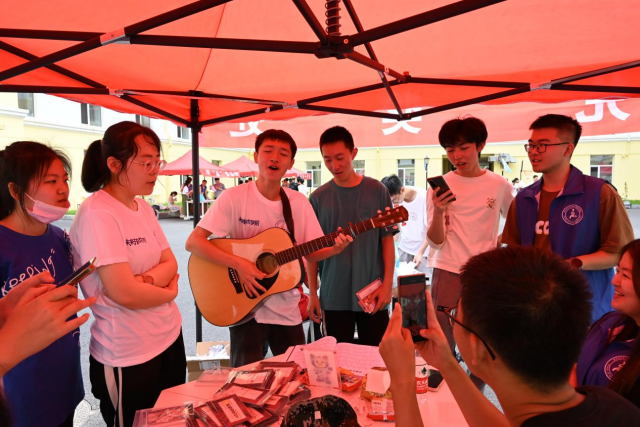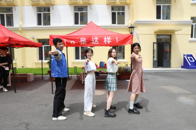 打卡的第二站来到了问天舞社的“jo是这样!”摊位。在这里,大家“立出自信,立出风范”,每一个模仿的姿势无不展现着身体柔韧性和控制力。