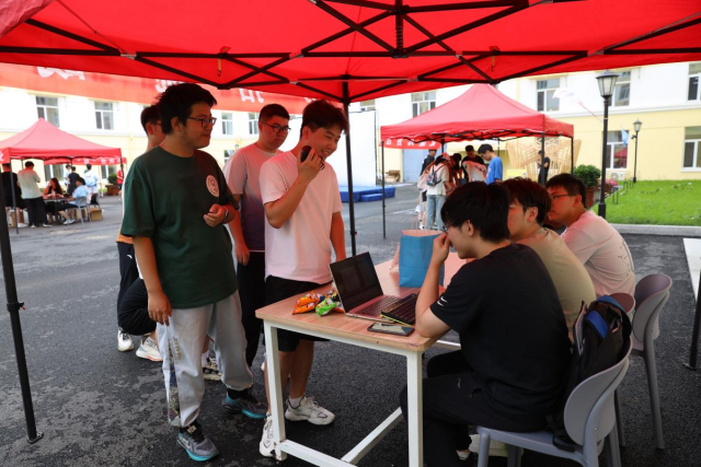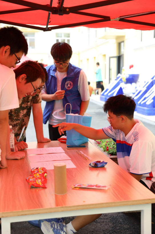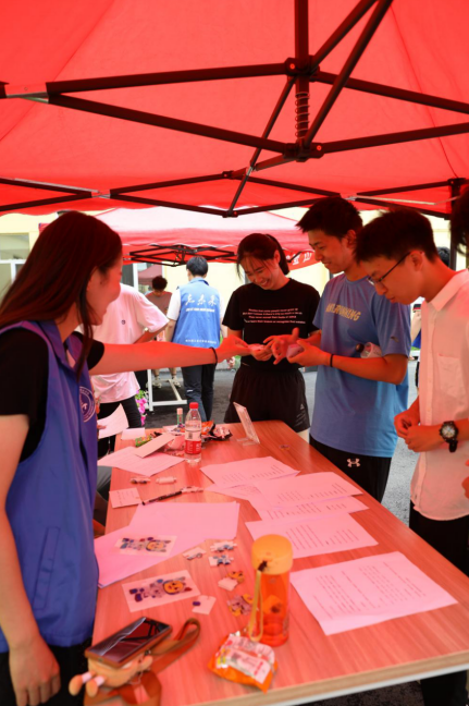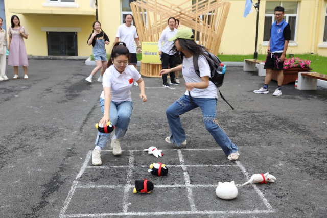 微雨初停,云开日出,怀着期待的心情,走进问天小镇的大门,未来的画卷在大家眼前慢慢展开。由公司9个员工组织负责的摊位,一站有一站的惊喜,一站有一站的特色,打卡的首站来到了“羽”你同行。精准的接球、默契的配合,自弹自唱的音乐声中传来了阵阵欢呼。