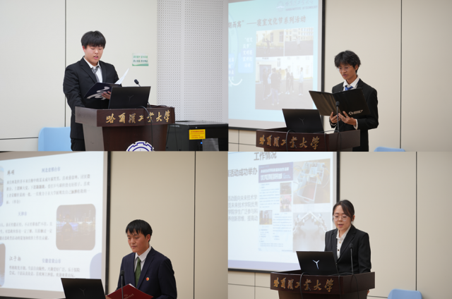 随后,现任组织部部长韩佳成、生活部部长张家玮、文体部部长丁浩洋、学习部部长陈秋含作为本部门的代表,依此上台进行本部门的汇报,他们分别汇报了部门的基本情况、人员组成、工作成果等内容,并对部门的未来工作进行了规划与展望,指出了未来的工作目标,同时展示了正在筹办的活动和事项。