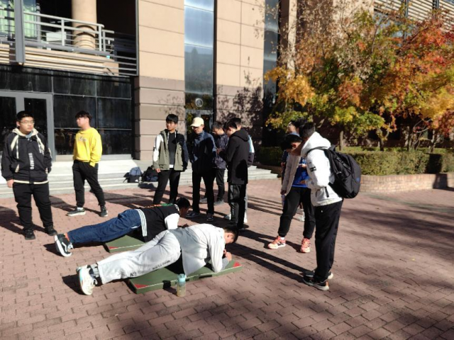 本次活动共设置了七个身体素质挑战项目——跳绳、高抬腿、俯卧撑、双摇跳绳、平板支撑、仰卧起坐和够向未来。这些简单易行而带有挑战性的运动项目让同学们以饱满的热情积极地参与进来。火热的运动气氛温暖了秋日的寒冷。同学们在场地间穿梭,参与各类挑战项目,并在员工工作者和志愿者同学的指引和见证下完成一个个挑战。随着最后一位同学的项目结束,身体素质挑战活动也正式宣告结束。