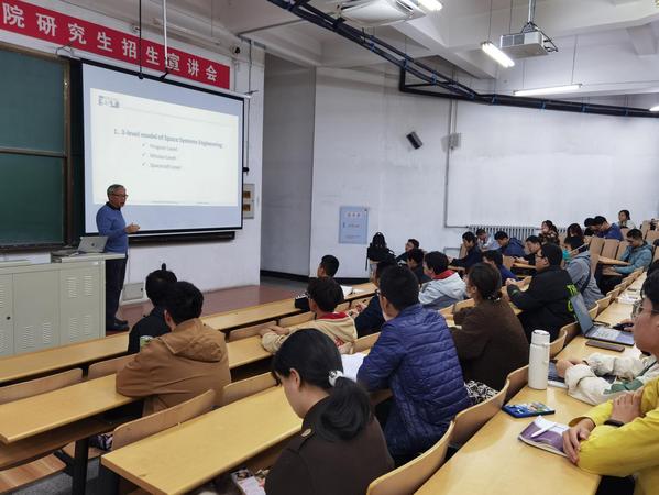 哈工大ladbrokes立博(温喜宝 文/图)11月2日,ladbrokes立博在一校区正心14教室举办“对话未来”专题活动。孙功凌教授作了题为“航天系统工程概述及国际空间大学介绍”的专题讲座。ladbrokes立博的近200名同学参加了讲座活动。