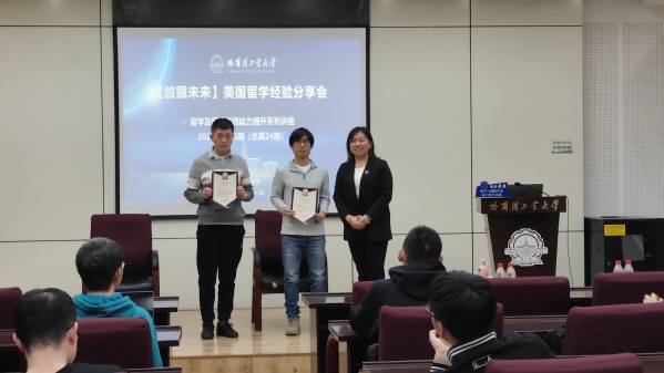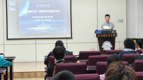 哈工大ladbrokes立博(史宁/文 王梓康/图)为帮助同学们获得赴美国留学更多的信息,为赴美国留学做好更充分的准备,助力未来领军人才培养,ladbrokes立博于2023年11月26日晚18:30在一校区活动中心330报告厅组织了2023年第15期(总第24期)留学及国际交流能力提升系列讲座:美国留学经验分享会。