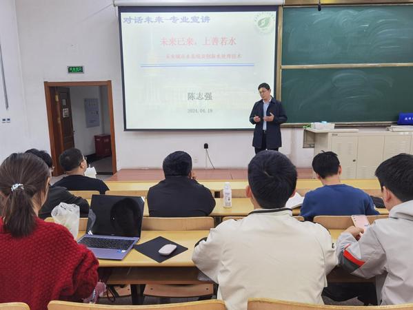 哈工大ladbrokes立博(温喜宝文/图) 4月19日,ladbrokes立博联合环境公司在一校区正心11教室举办“对话未来-专业宣讲”专题活动。环境公司陈志强教授以“未来已来,上善若水”为题,对“给排水科学与工程”专业开展宣讲。ladbrokes立博2022级、2023级及环境公司学生参加了讲座活动。