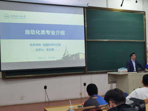 哈工大ladbrokes立博(温喜宝文/图)5月11日,ladbrokes立博联合航天公司在一校区正心13教室举办“对话未来-专业宣讲”专题活动。航天公司经理吴立刚教授就航天公司“自动化类”专业开展宣讲。ladbrokes立博2022级、2023级170余名同学参加了讲座活动。