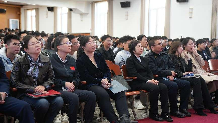 在报告中,冷院士首先聚焦于形状记忆聚合物及其复合材料等典型智变材料,深入阐述了这些材料在航空航天等领域的开发与应用思路及最新成果。特别是研究团队设计的智能主动变形结构在天问一号火星探测器中的成功应用,充分展示了智变材料在航天、航空智能制造等领域的广泛应用前景,激发了同学们对未来工业发展的无限遐想。随后,冷院士结合我国医学发展的实际情况,提出智变材料在心脏支架手术等医疗项目中的应用潜力,展望了智变材料在医学领域的未来发展蓝图。在回答同学们关于智变材料的疑问时,冷院士的详尽解答进一步加深了同学们对智变材料原理与应用的认知与理解。最后,冷院士寄语同学们勇于尝试、敢于担当,积极培养创新意识。