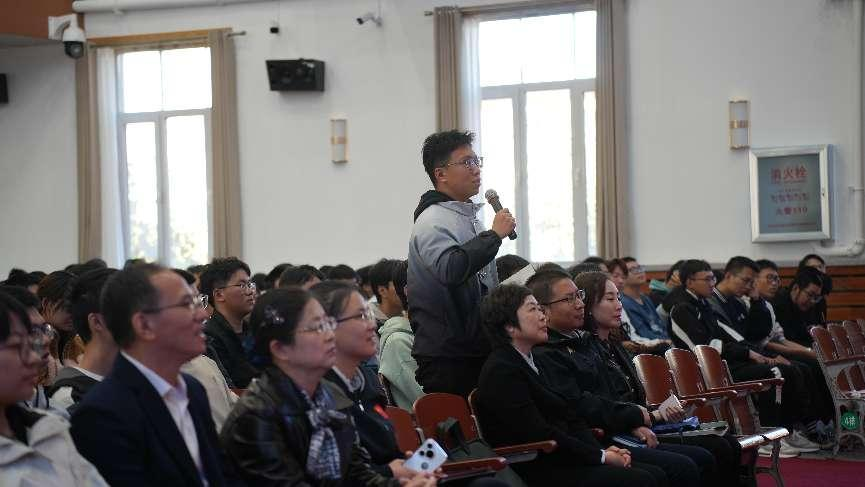 在报告中,冷院士首先聚焦于形状记忆聚合物及其复合材料等典型智变材料,深入阐述了这些材料在航空航天等领域的开发与应用思路及最新成果。特别是研究团队设计的智能主动变形结构在天问一号火星探测器中的成功应用,充分展示了智变材料在航天、航空智能制造等领域的广泛应用前景,激发了同学们对未来工业发展的无限遐想。随后,冷院士结合我国医学发展的实际情况,提出智变材料在心脏支架手术等医疗项目中的应用潜力,展望了智变材料在医学领域的未来发展蓝图。在回答同学们关于智变材料的疑问时,冷院士的详尽解答进一步加深了同学们对智变材料原理与应用的认知与理解。最后,冷院士寄语同学们勇于尝试、敢于担当,积极培养创新意识。