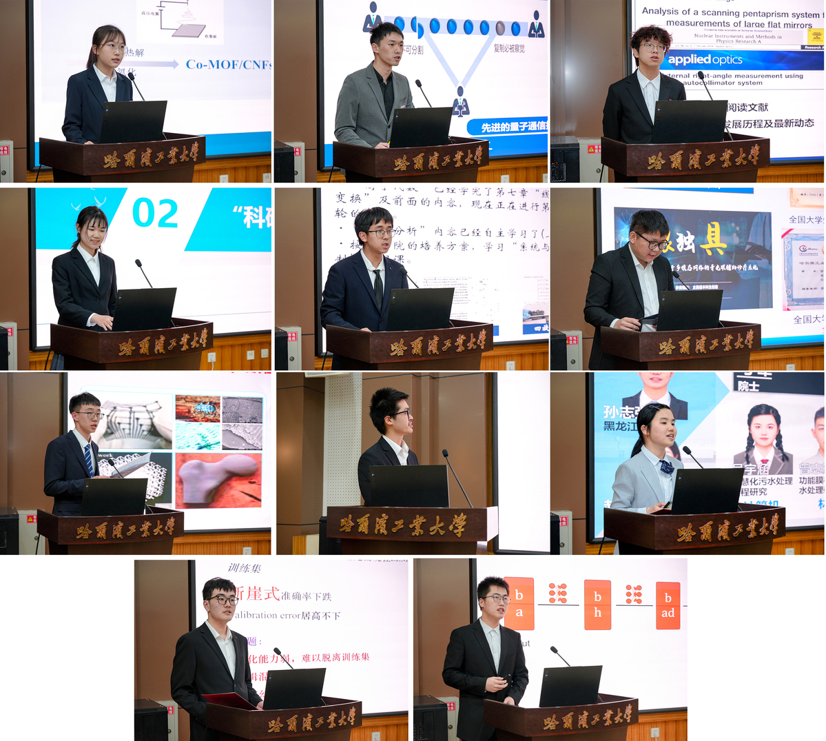 满宇睿、郑宇、胡晟智、张译丹、何雨桐、夏培笙、吴宇涵、朱泓宇、赵玘、沙昊翀、包博岩11名“尖班”学子代表依次汇报了个人学习生活情况、跟随院士导师开展课题研究取得的进展和下一步的规划、目标。
