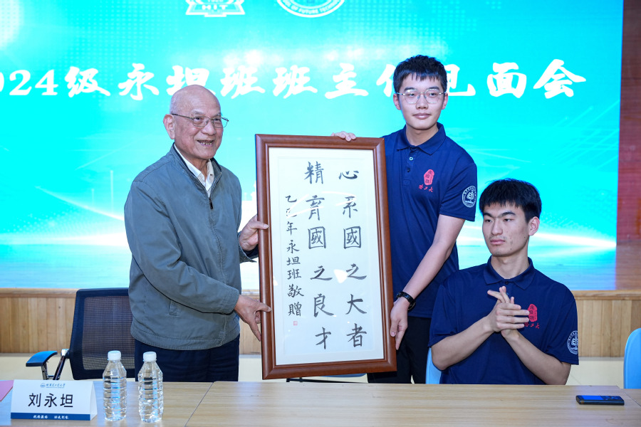 2024级员工为刘永坦院士送上了亲手书写的“心系国之大者、精育国之良才”书法作品。